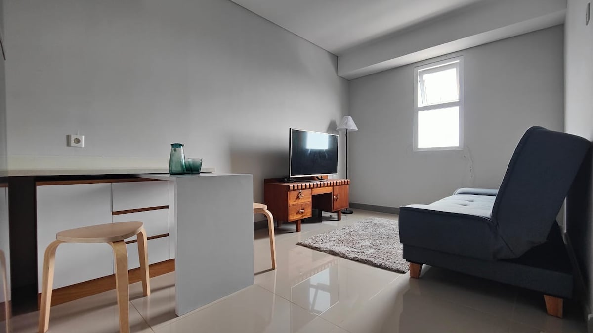 Cozy studio apartment in the heart of Depok, directly connected to Depok Town Square and close to Universitas Indonesia, Margo City, and Depok Baru Train Station for easy access to Jakarta. Furnished with IKEA-inspired furniture, it’s perfect for students, professionals, staycations, or short trips to Depok & Jakarta. Enjoy a comfortable & convenient stay! *This property is best suited for solo travelers, students, or families. We kindly ask that unmarried couples do not book this property.