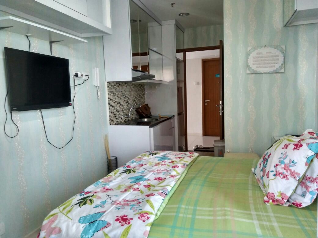 A cozy and modern studio apartment in the city center of Depok. Located near Universitas Indonesia, Margonda street, Kukusan Highway, and UI & Pondok Cina train station. Equipped with facilities such as swimming pool, parking lots, 24h cafe, convenience store, wifi, TV, AC, and kitchen set.