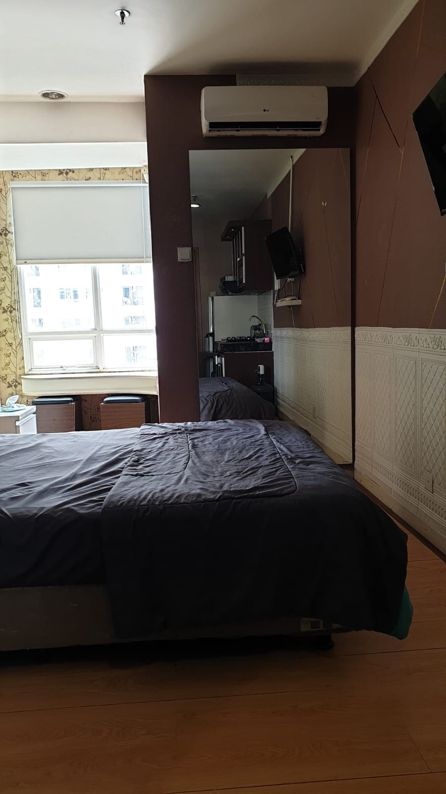 The Japandi style studio makes you feel comfortable and relaxed. The view towards Taman Mini Indonesia Indah (TMII) is a relief because it is far from the hustle and bustle of the city. Please make a reservation at least 24 hours before check-in time.