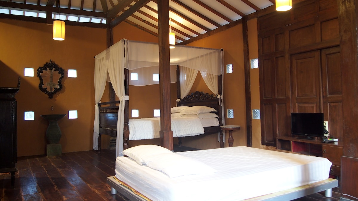 Escape to our serene villa, nestled in an authentic traditional Javanese village, where lush greenery meets modern amenities. Perfect for families or groups of friends, this tranquil retreat offers a blend of cultural heritage and contemporary comforts. Immerse yourself in the cultural richness of the village, where you can experience the beauty of Javanese architecture and hospitality.