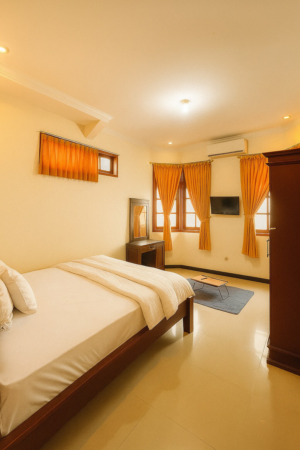 🏡 Private Villa – Entire Property Rental The price shown is for the entire villa, not per room. During your stay, the whole property is exclusively yours — no other guests will be present. With 8 spacious bedrooms, a large pool 15x9 and 1,400 m² of living space, it comfortably hosts up to 20 guests. Only 3 km from town and 20 minutes from Yogyakarta city center, it’s perfect for families, friends, or retreats, surrounded by tropical peace and comfort. 🌴✨