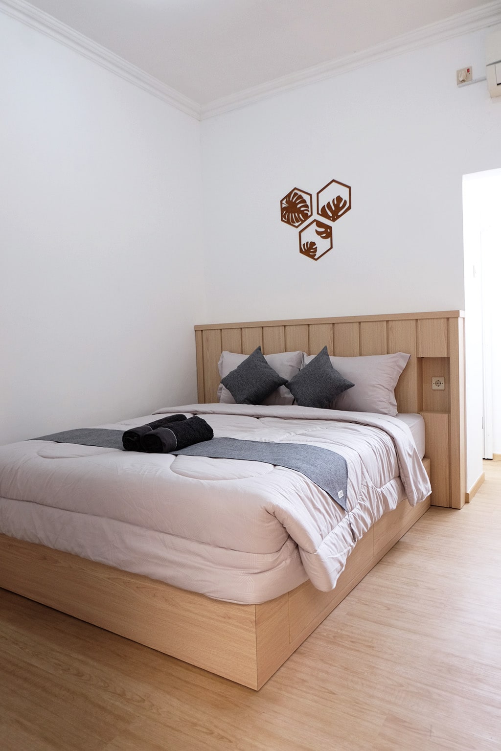 Casalista House: Modern Oasis in the City Kamar 1 (lantai 1): 2 kasur ukuran 140x200 (muat 4 orang) Kamar 2 (lantai 2): 1 kasur ukuran 200x200 (muat 2 orang) Kamar 3 (lantai 2): 1 kasur ukuran 140x200 (muat 2 orang) Escape to our stunning 2-story minimalist home, nestled in a quiet gated community. Our beautiful garden creates a fresh and peaceful atmosphere, making it an ideal retreat for families, friends, and couples.