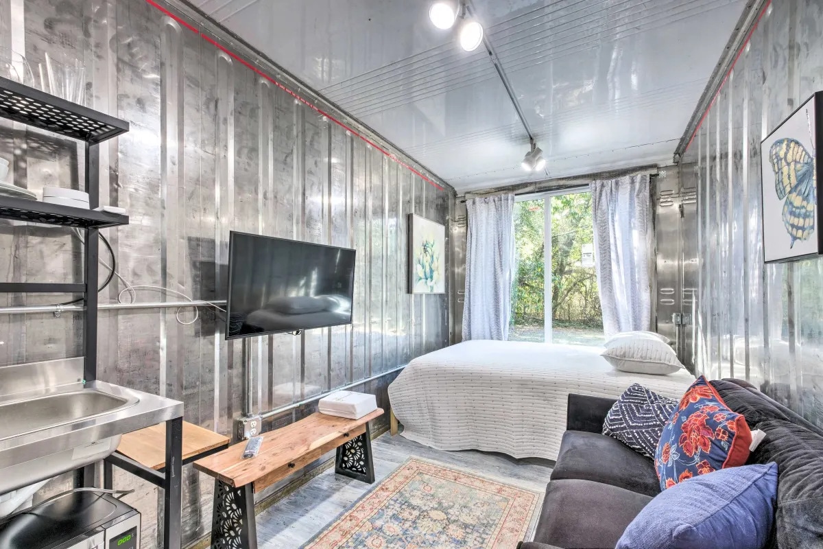 Our home is less than a mile to UFHealth at Shands and the Malcom Randall Veterans Medical Center. We are a mile to the University of Florida campus. Amazingly, also a short bike ride (1-2 miles) to Downtown Gainesville. Close to Depot Park, art studios, restaurants, music venues, and theater. Nature parks close too. The bonus is we live on 2 acres, tucked back in a quiet neighborhood. Our pool is deep & cool; we have bikes to borrow. The container is perfect for a solo traveler, or a couple.