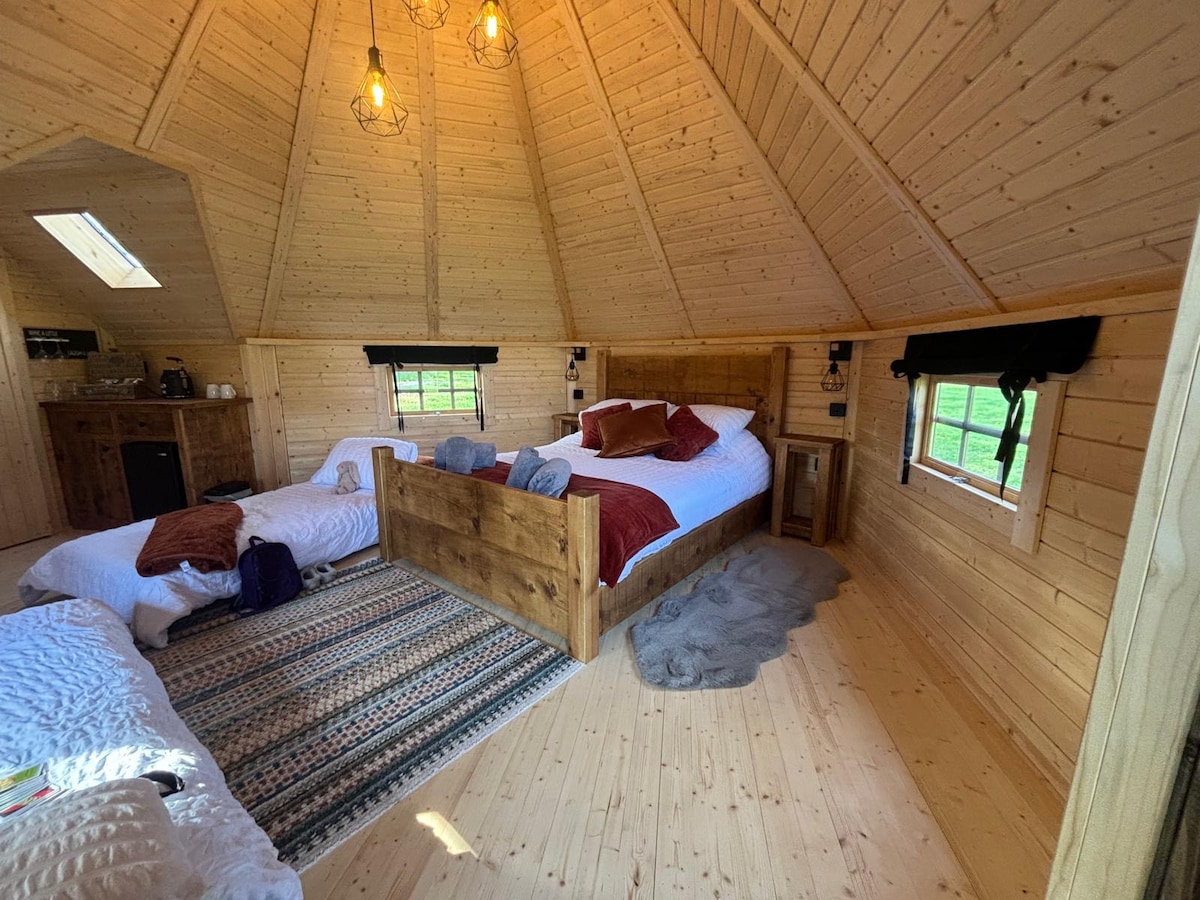 Peake's Retreats luxury yurt 'glampsite'. 12 miles from the beautiful Peak District, our 3 six metre yurts are fully furnished sleeping up to 4 guests in Milne’s Corner and up to 6 each in the other two. With wood burning stove, optional private hot tubs, Finnish BBQ hut, cooking cabin and luxury shower and toilets, our yurts are fully insulated ideal for year round use. Whether a couple after a romantic weekend away, or a family looking for some quality time, this is the perfect retreat