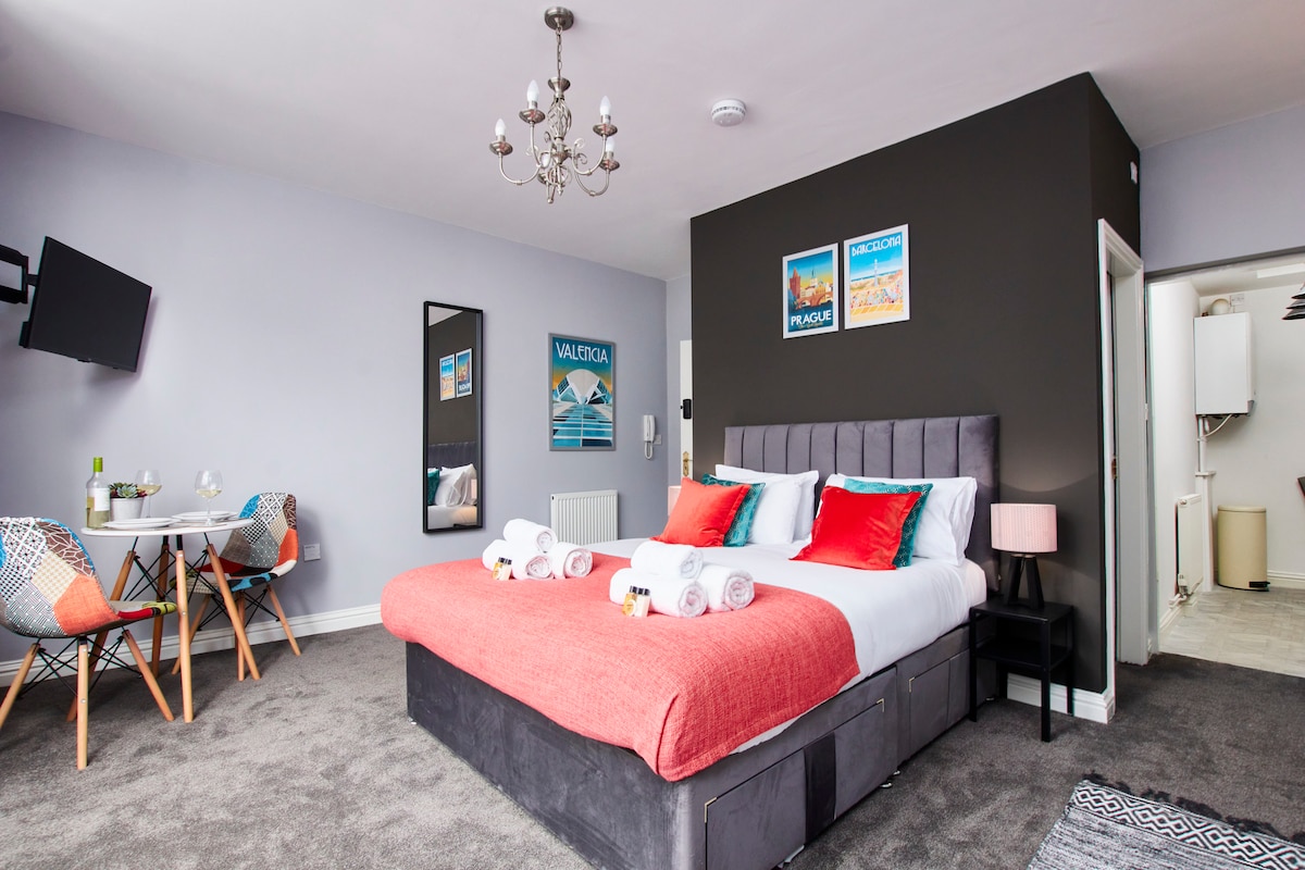 Welcome to STAYNOVA APARTMENTS, your modern city retreat, a stylish apartment designed for both business and leisure. With a cozy lounge, smart TV, high-speed WiFi, fully equipped kitchen, comfortable bedroom, and modern bathroom, it has everything you need for a relaxing stay. Perfectly located near attractions, shops, restaurants, and transport links, STAYNOVA APARTMENTS combines the comfort of home with the elegance of a premium stay the ideal base for work, rest, or exploring the city.