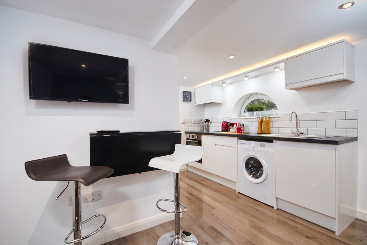 This stunning apartment has been decorated and furnished to a high standard and is located in a stunning period building within a lovely courtyard. The lounge and kitchen has views of the courtyard. Free parking, the train and bus station are 4 minutes walk. An abundance of restaurants, bars, cafe's, an array of fabulous shops, beauty and hair salon on the ground floor, an Artdeco cinema just around the corner. Lots of great local walks.