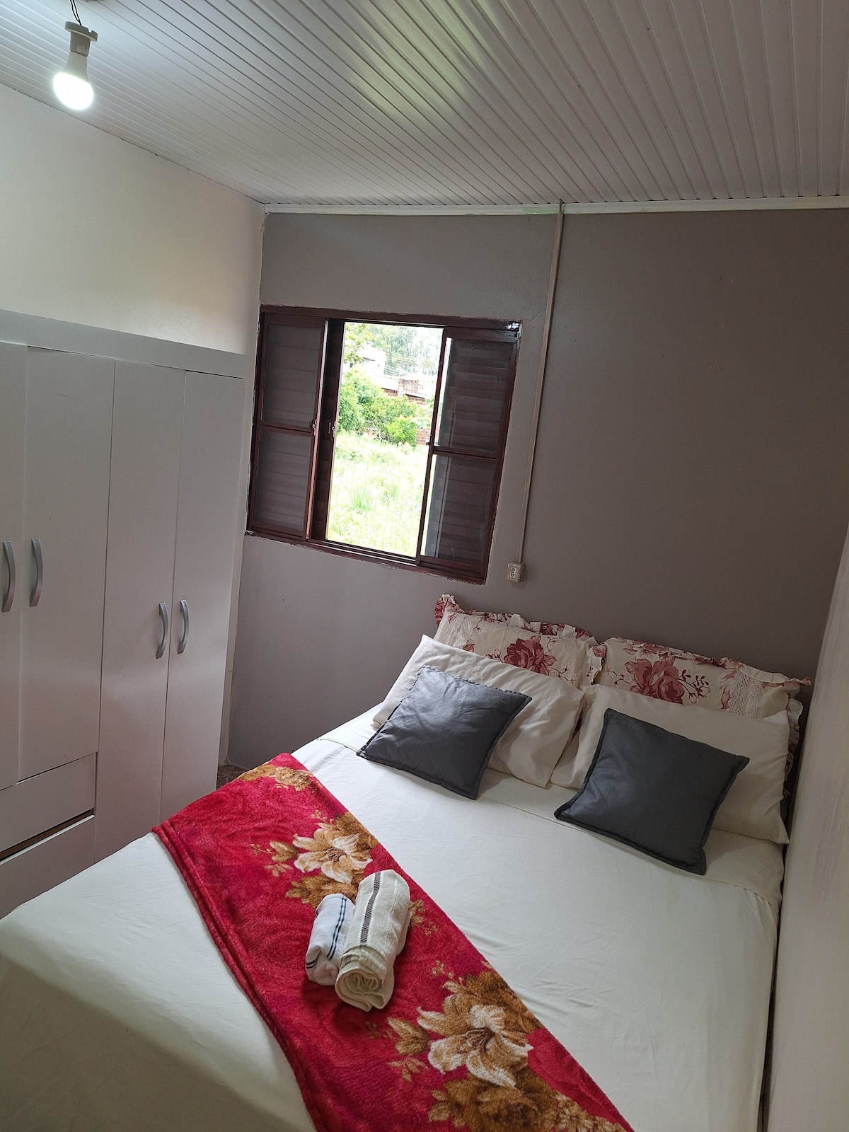 Quarto 1, cama casal colchão de molas super confortavel, ar cond split Q/F e roupeiro.