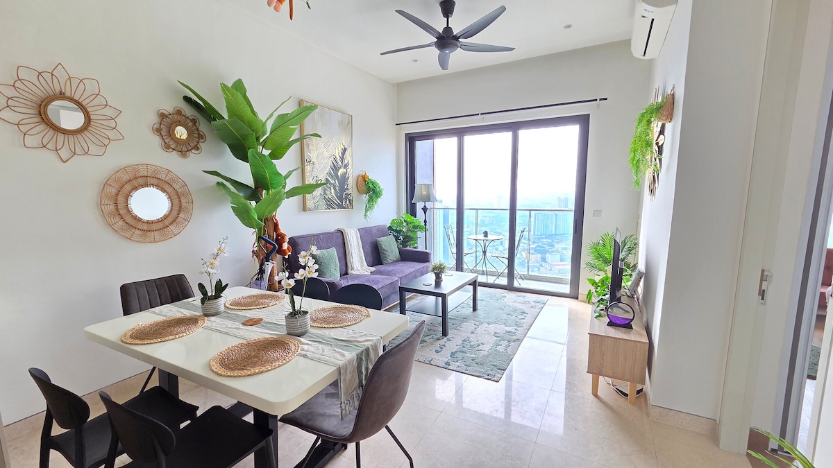 Sit back & relax in this calm, stylish space. Why Tropical serenity Suite at Lucentia Residence - High floor - Beautifully decorated with a fun spirit - Centrally located & attached to public transit hub - Fast wifi - 2 TVs with Netflix & others - 2 gorgeous pools with KL view - Family friendly with baby crib & highchair - Gym, pool table, BBQ pits, piano - Garage parking - Recommended for 6 people - LaLaPort Shopping Mall & the WOW entertainment street, grocery, drug store & Cinema attached