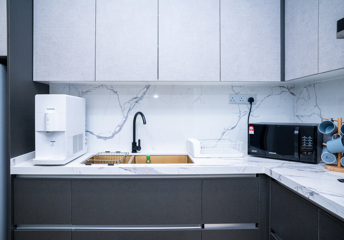 A Corner Luxury unit for family‼️ NOT 5⭐️Hotel, BUT Comfort Cozy Space, that comfortably fit in✅8-11guests‼️ comes with 3 bedrooms & 2bathrooms 🌟2free parking provided🌟 -extra cars>>visitor parking RM8 full day. 1) Master Bedroom with en-suite bathroom - Double bed - King size bed[on floor] 2) Bedroom2 & 3 -Double bed -Single guest bed(moveable) PROVIDED:- Laundry Machine/ Hairdryer/ Water machine(hot&cold) ❌iron NOT PROVIDED❌ ❌smoking prohibited ❌compensation if found out