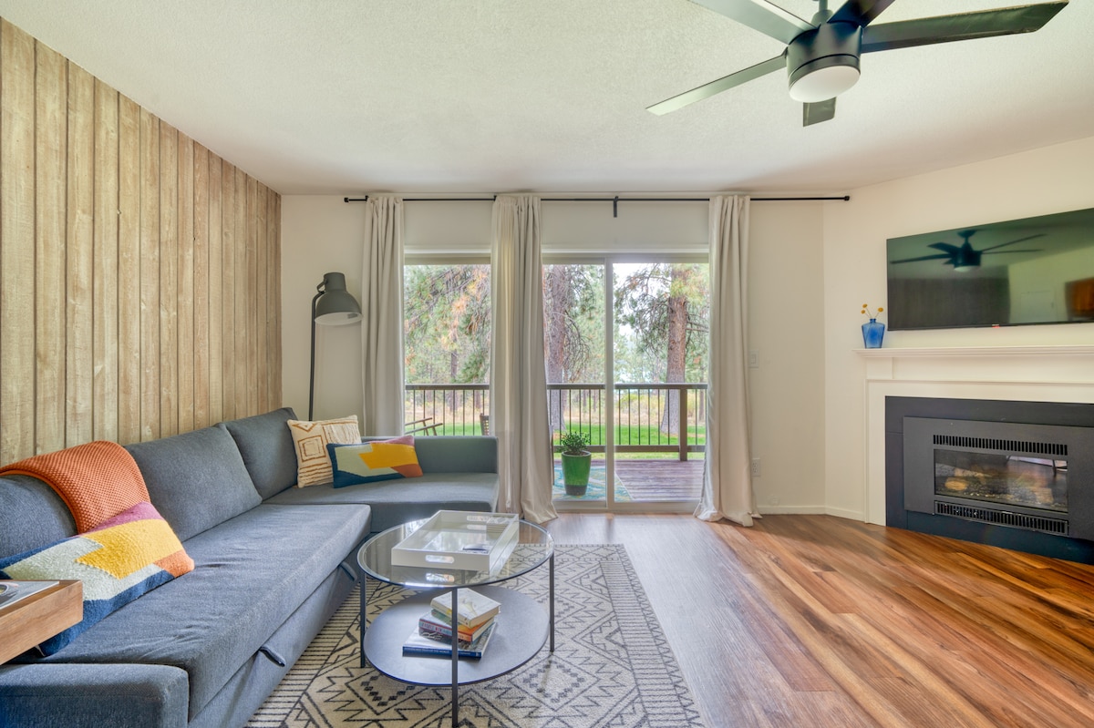 LOCATION CAN'T BE BEAT Meticulously Clean Modern Space Private apartment STEPS AWAY FROM THE DESCHUTES RIVER AND A 5 MINUTE WALK TO THE SUMMER SHOWS AT THE AMPHITHEATER A PERFECT BASE FOR WINTER AT MT. BACHELOR NO-CONTACT EASY CHECK-IN OLD MILL LOCATION IN THE MOST DESIRED NEIGHBORHOOD IN BEND Perfect setting in the heart of Bend between downtown & The Old Mill District Walk to fine dining, boutiques, galleries, theaters, coffee and the Deschutes River Trail steps away