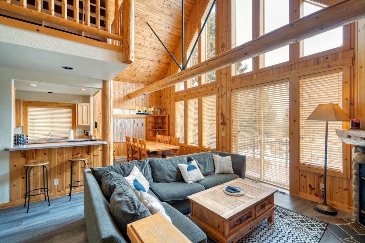 Instantly transition into vacation-mode. A modernized 3,200+ square foot log home located within the city of Bend. Enjoy the natural wood surroundings and massive vaulted ceilings that allow for space to spread out and relax. Get your chef on in the fully equipped kitchen or opt for the outdoor BBQ and pizza oven. No parties, pets or ESA's please. Trip insurance recommended if illness, weather or smoke may be an issue. *Note major construction behind the home! Townhome Development in Progress.