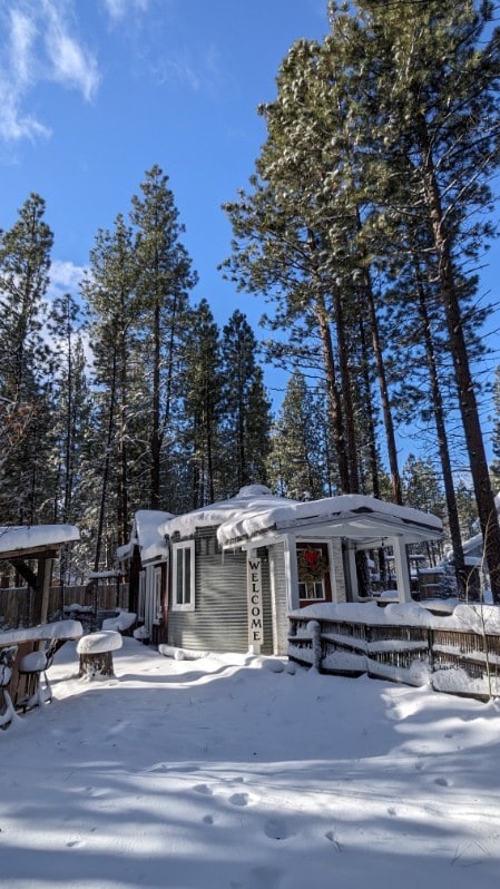 Our tiny log cabin is a cozy getaway, close to hiking, mountain biking, and cross country skiing but only 10 miles from the amenities of Bend Oregon. It is a rustic place, with modern touches, like a gas range, refrigerator, and a gas fireplace. The bathroom is detached from the cabin - steps from the door. It is fully equipped with plumbing and a shower. Our place is perfect for people who love the outdoors with the comforts of home. No children under the age of 12 -- And alas, No Pets.