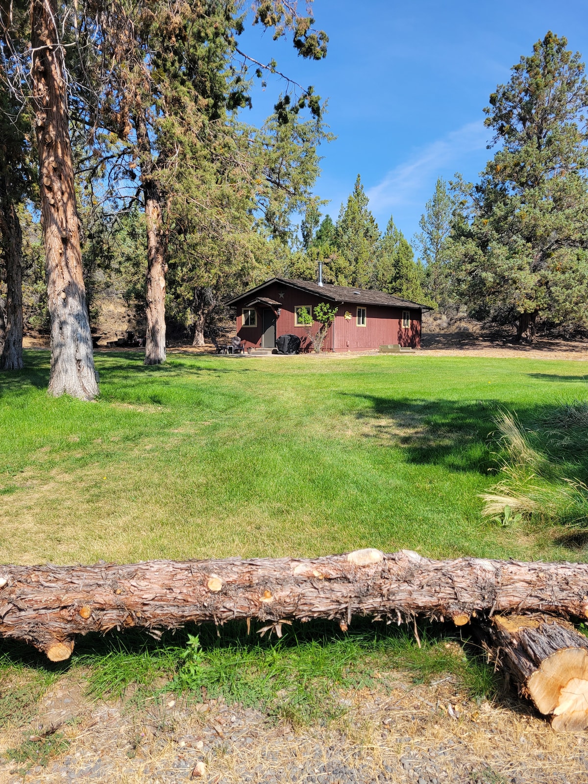 小木屋位于安静的3英亩土地上,距离本德市中心10分钟路程。