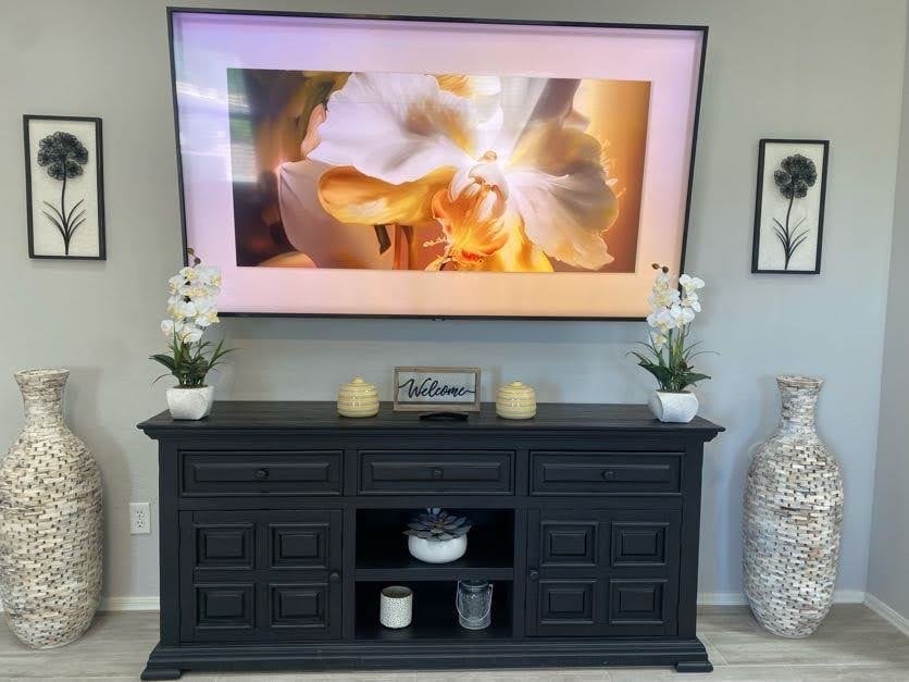 Discover comfort in this fully updated 3-bedroom, 2.5-bath home, nestled in a secure gated community. The home boasts a warm and inviting atmosphere, premium finishes, televisions and the fastest internet. Step outside and enjoy the pool right across the street. This home places you at the heart of the action—less than a mile from State Farm Stadium, the Entertainment District, Desert Diamond Arena and Casino. Whether you're here for a game, a concert, spring training or just a weekend getaway.