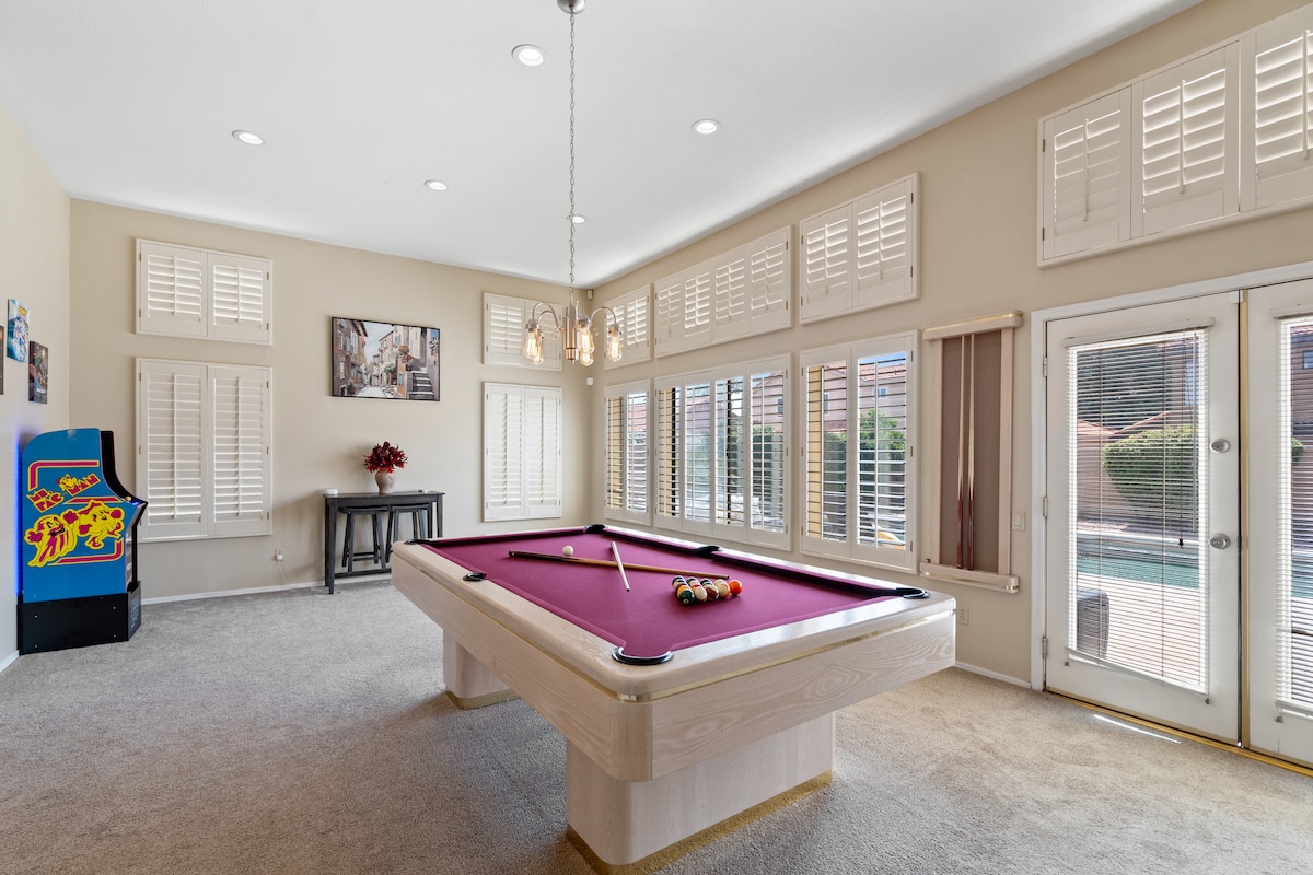 - Year-round relaxing in Heated Saltwater Pool & Spa - Saltwater is gentler on skin and eyes (Heating in winter is optional. Heating fee details below) - Cozy up to outdoor fire feature - Fully stocked kitchen including an outdoor BBQ grill - Game room w/ pool table, foosball table, darts, & big screen tv - Outdoor dining area & bar to enjoy the amazing weather - Outdoor TV to watch the big game or movie while soaking in the spa - Easy access to 2 major freeways - Artfully & uniquely decorated