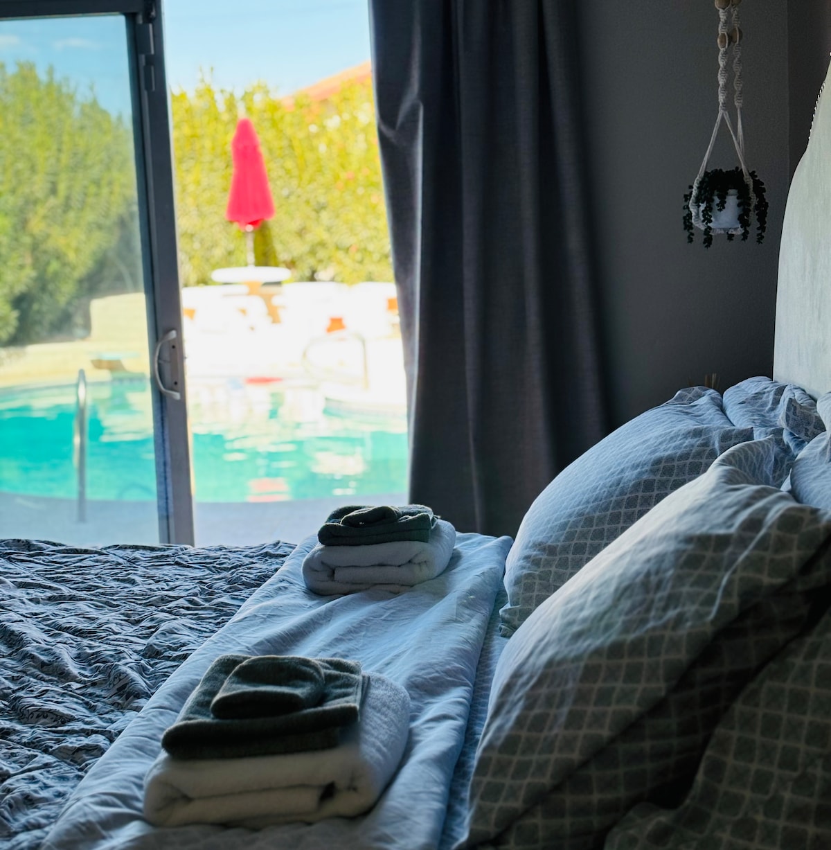 Escape to our 1-acre desert oasis in Las Vegas! Our home offers a unique blend of coziness and excitement, with a balcony boasting stunning mountain views and a glimpse of the vibrant Las Vegas Strip. 1200 sqft of living space for up to 4 person, 22’ pool 4’ depth with slide, Pickleball and basketball Enjoy a short par 3 golf course right in your backyard, . Experience the magic of the desert landscape, just a short drive from the bustling Strip. Your adventure awaits here in this desert haven