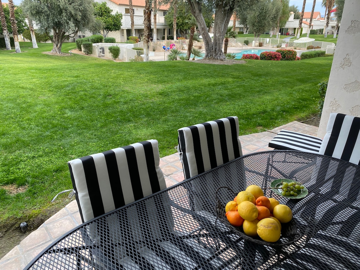 Cozy Studio with private entrance & patio, pool & spa, golf all around, 8min - Tennis Gardens, 12min - Acrisure, win win location! In the heart of a city, but in a quiet neighborhood with plenty of street parking. 10min walk: Albertson's, TraderJoe’s, gas station, dry cleaners, hair & nail salons & few restaurants. Quick drive: Upscale shops, art galleries, restaurants & bars on El Paseo, Acresure Arena, McCollum Theater, Tennis Gardens, Golf, Chella, Stagecoach, Living Desert Zoo, Casino