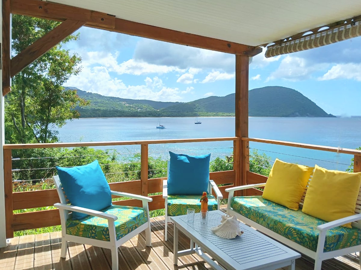 Maison , vue 180° sur mer des Caraïbes. Plage a 50 mètres. Cuisine toute équipée (plaque, micro-ondes, lave vaisselle, lave linge etc...), air conditionné dans les chambres, grande véranda de 50m2. Bar ouvert sur véranda. Deck avec solarium et barbecue. Chambres spacieuses avec rangements. 2 salles de bains, 2 WC. Salon et espace repas sur véranda. Wifi gratuit (fibre) Proximité route passante occasionnant en journée du bruit de voitures . Cet inconvénient disparaissant le soir et la nuit.