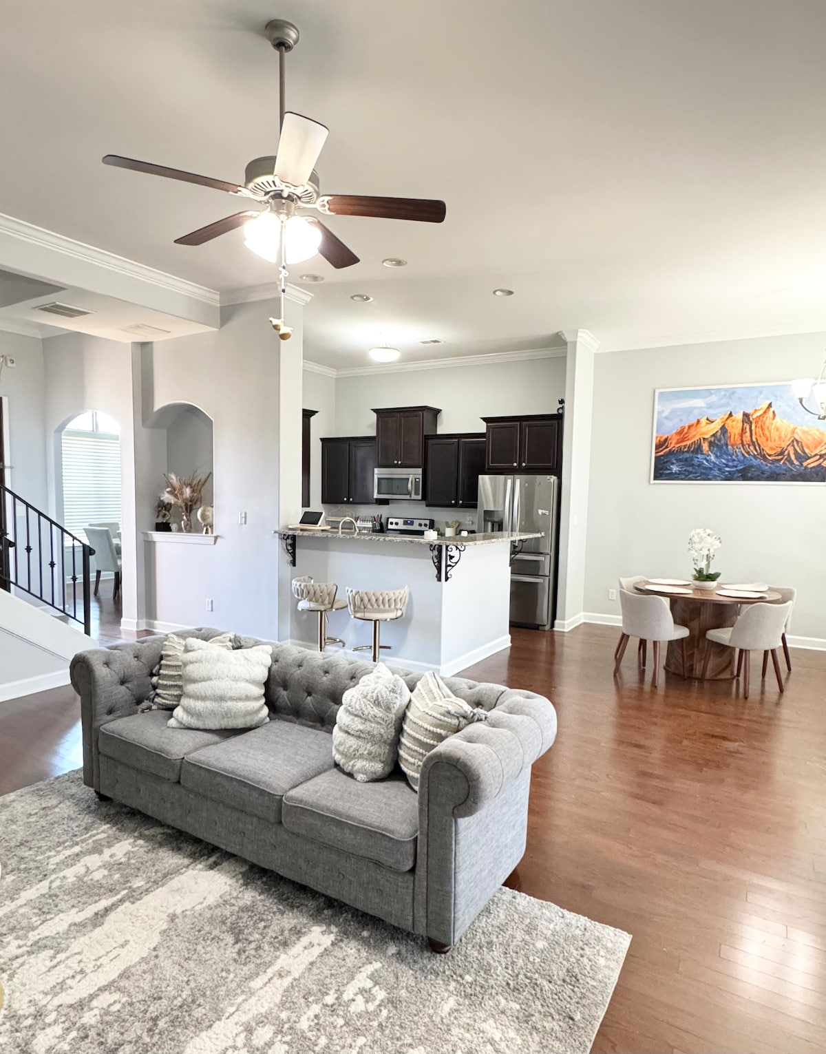 Spacious 3 bed/2 bath, is located in the heart of Hernando. Only 2 mins to the beautiful downtown square, restaurants, shopping and only 5 minutes to the Interstate . Covered Patio. Open floor plan, large living room . Kitchen is fully stocked. Living Room/couch, recliner, 50" smart tv, wifi/Internet. Kitchen/Dining room seats 12. Master bedroom, queen bed, large on-suite, jetted tub, shower, large closet, toilet room, Bedroom 1/queen bed Bedroom 2/queen bed, 2nd bathroom/tub/shower combo.