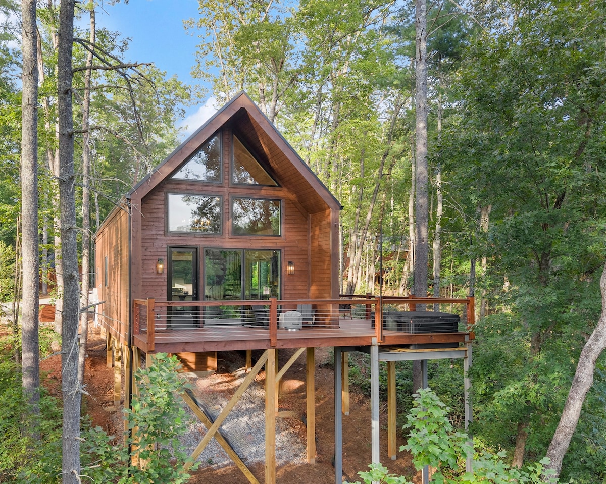 Introducing Tip-Top Treehouse, newly built in 2022. This spectacular treehouse will submerge you in peaceful tranquility and privacy on beautiful wooded acreage, yet minutes from town. Inside you’ll be pampered in your Tempur-pedic bed in the loft adjoined by a substantial whirlpool bubble jet tub. Come unwind, hike a waterfall, visit a winery, enjoy the sunset or sit by the fire. Your Dahlonega treehouse experience awaits!