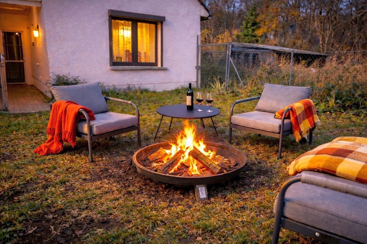 In einem privaten Hof mit viel Grün wartet das gemütlich eingerichtete Haus (76 m²) auf seine Gäste. Ihr Auto parken Sie kostenlos direkt vor Ihrer Unterkunft. Durch die zentrale Lage sind Sie schnell in der Innenstadt. Im Wohnbereich lassen Sie in der kalten Jahreszeit bei einem knisternden Kaminfeuer den Tag ausklingen (Holz wird vom Gastgeber gestellt). In der warmen Jahreszeit können Sie es sich auf der großen Terrasse (nur zu Ihrer Benutzung) bei einem Glas Wein gemütlich machen.