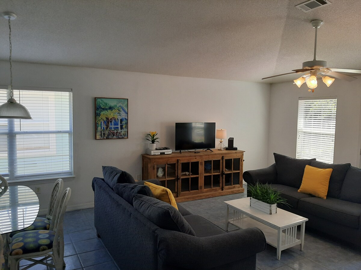 *now dog friendly *golf cart included *laidback coastal charm *Ample living space, almost 2300 sq ft *safe and sought after neighborhood *back patio faces community pool *back patio with private grill and fire pit *community pool *carport, driveway parking and parking pad, room for 3 vehicles (overflow parking at pool) *under 8 minute walk to beach, restaurants and shopping *fully stocked kitchen *no week minimum *low admin fee