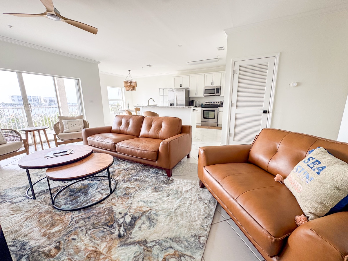 Experience the epitome of coastal living at the "Emerald 'Jule'", a newly renovated 2-bedroom , 2-bathroom with a queen pullout sofa to comfortably accommodate six. Exuding charm and elegance this villa is nestled within the highly sought-after "Destiny Beach Villas" community. This waterfront gem boasts prime real estate, with the tranquil Four Prongs Lake at its rear and pristine sugar-white beaches just steps away from Tom Lee Park beach access and the renowned Crab Trap restaurant.