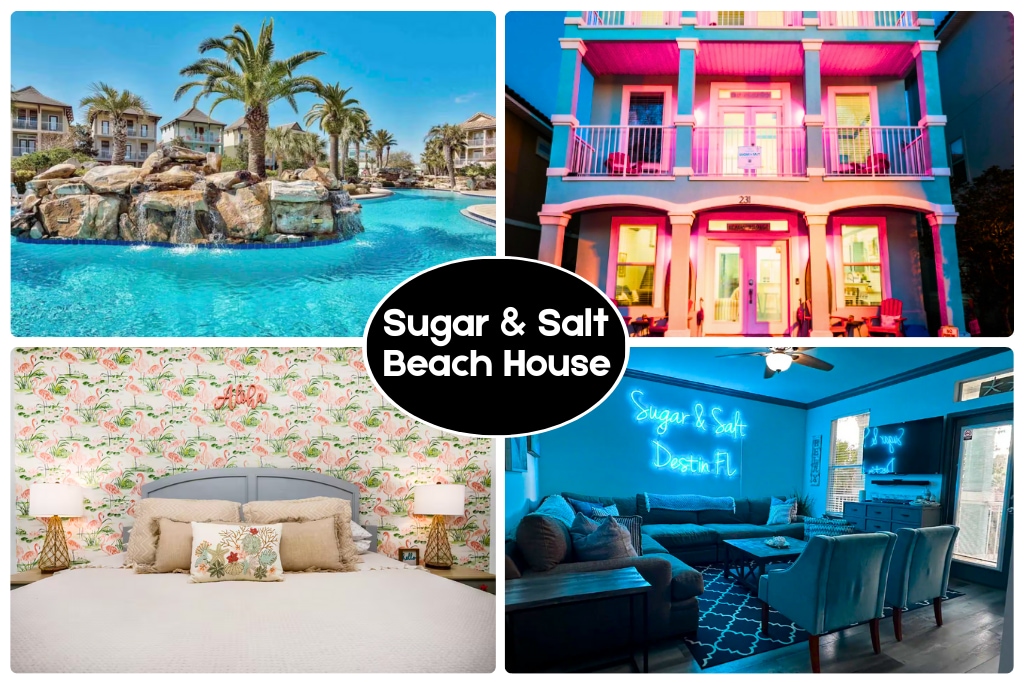 Dolphin Dreams will take your breath away! New (Built in 2022). Super Chic Getaway Just Steps to the Beach! Heated Private Pool* Hot Tub, and Outdoor Kitchen! Sports Turf, Game Room with ping pong table, air hockey table, and Open Floor Plan! If you're looking for the coolest beach house in Destin, you've found it! 7 King Bedrooms with en-suite bathrooms, 1 Queen Bunkroom (4 queen beds) with en-suite bathroom, 9 Bathrooms, 8 Bedrooms, Tesla charger available.