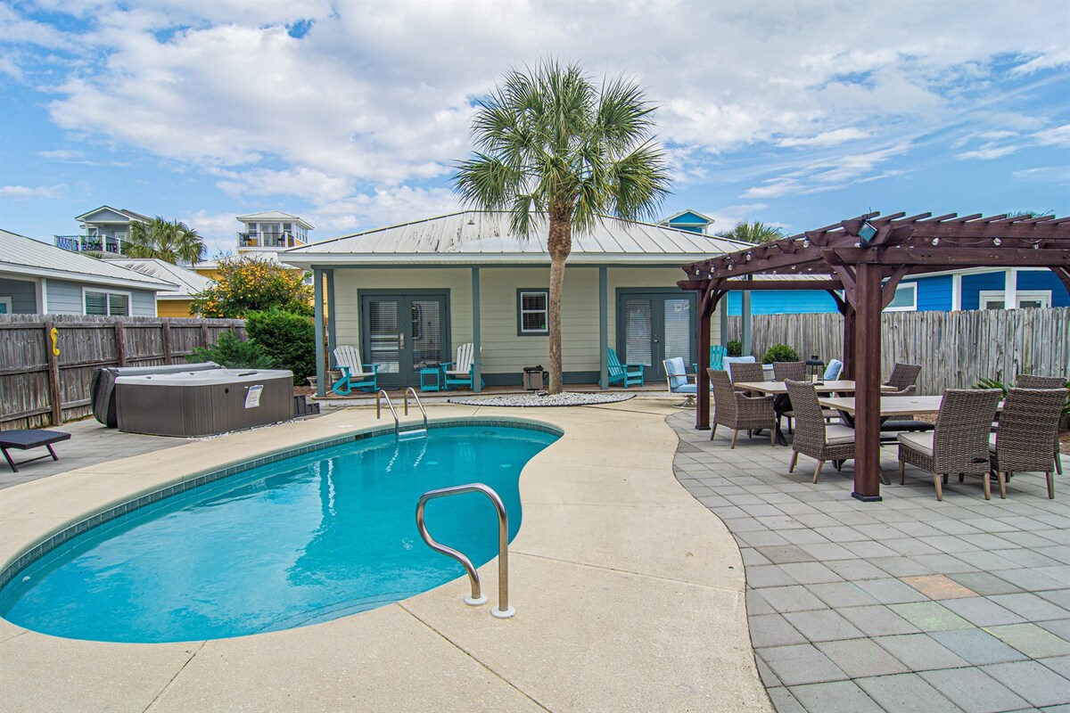 🌴 Welcome to Sweet P on Penelope! 🏡✨ One of the rare 🌟 5-bedroom gems in the highly sought-after Frangista Beach Community! Featuring a relaxing interior and a unique backyard space, our home has something for everyone - private heated pool, palm trees, a fire pit and a 100” outdoor theatre! When you're ready to explore, take the complimentary 6 person golf cart (available to guests 21 years and older) to the beach, shopping, restaurants and more.