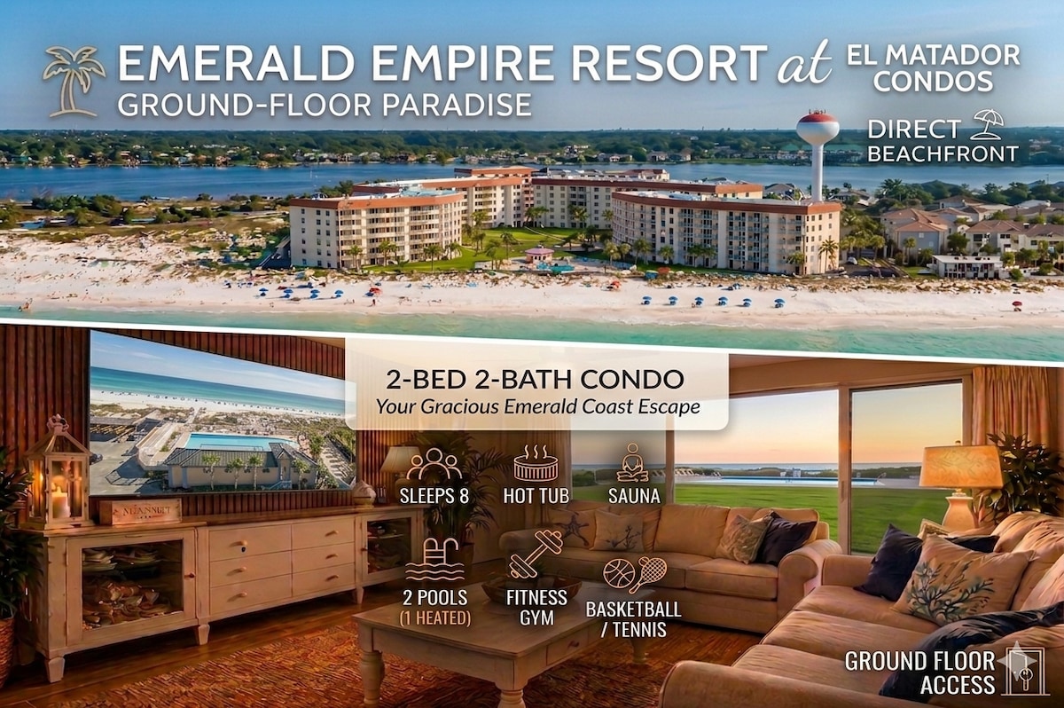 Destin beachfront condo at their best... hidden gem direct oceanfront corner unit on a private non-crowded beach. Newly-renovated, designer-decorated, one-of-a-kind, AND sweeping ocean views! Located in the heart of Destin in a low-density building w/only three stories and 29 units, situated on soft white sand with on-site garage parking! Breathtaking views and serene ocean sounds! Walkable to Destin's most popular restaurants and entertainment, delicious seafood next door at The Back Porch!