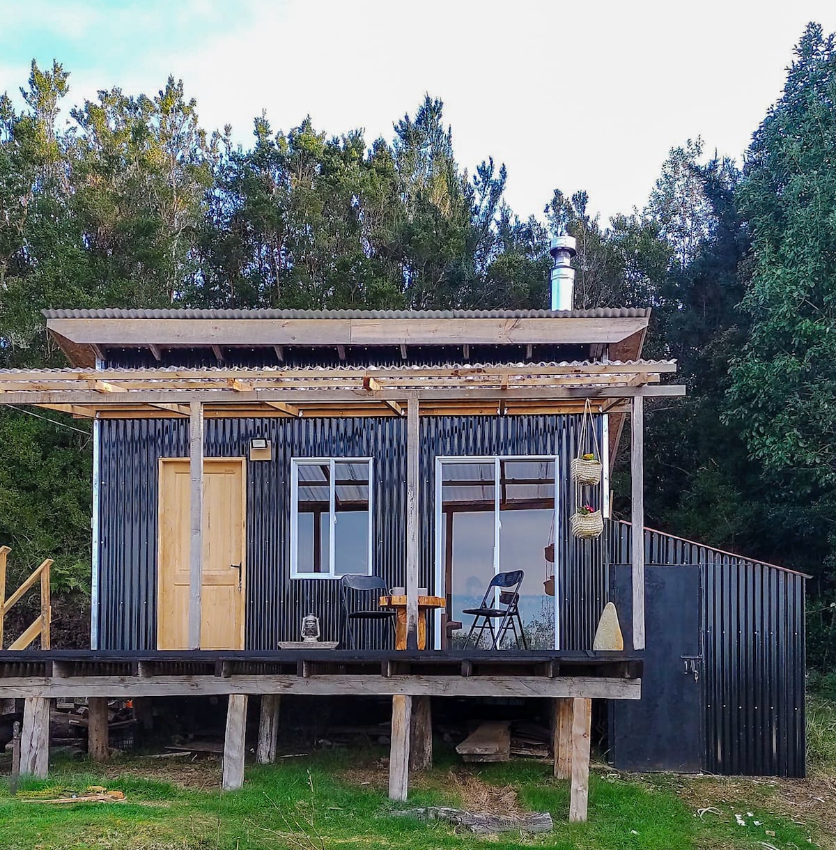 Disfruta de una escapada en medio de la naturaleza con nuestra acogedora cabaña para dos personas con vistas a la cordillera de los andes y al mar interior de Chiloé. Tendrás todo lo necesario para sumergirte en la magia del sur en un espacio acogedor con estufa a leña, terraza, y un estar compacto que hace todo accesible. Recorre los senderos y avista pudúes, chucaos y toda la flora chilota en un terreno de dos hectáreas a 20 minutos de Quellón y 60 minutos de Castro.
