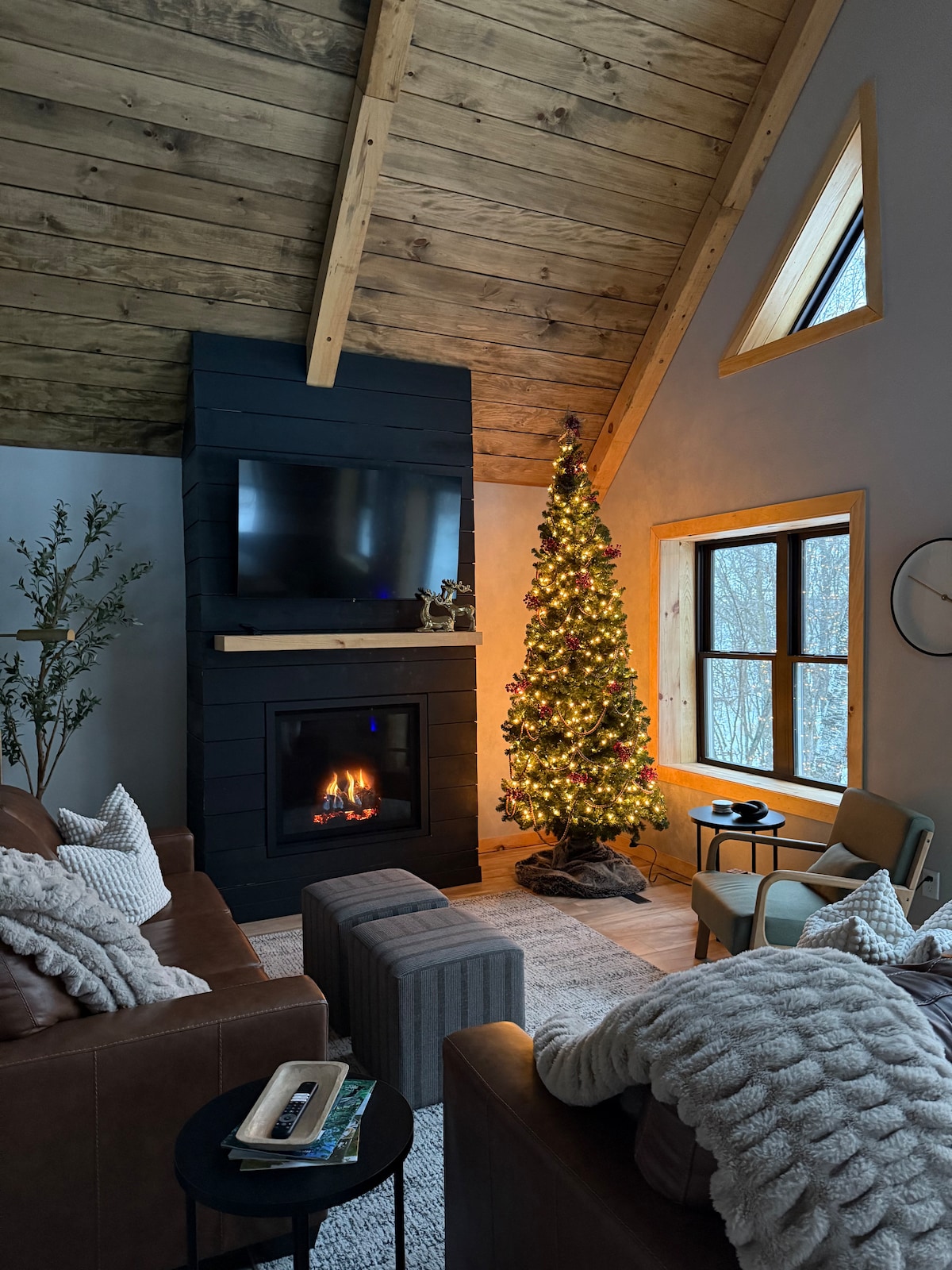 Escape to the serenity of the Tiny Timber cabin, where stunning nature views and modern comfort await. This charming 450 sqft cabin offers a cozy respite from the hustle and bustle, with breathtaking scenic views that will leave you in awe. Nestled within reach -fantastic lakes, nearby restaurants, and a host of recreational activities, this is the perfect base for your getaway. Unwind, have a campfire, enjoy the sauna, play games or simply relax and soak in the beauty of the surroundings.