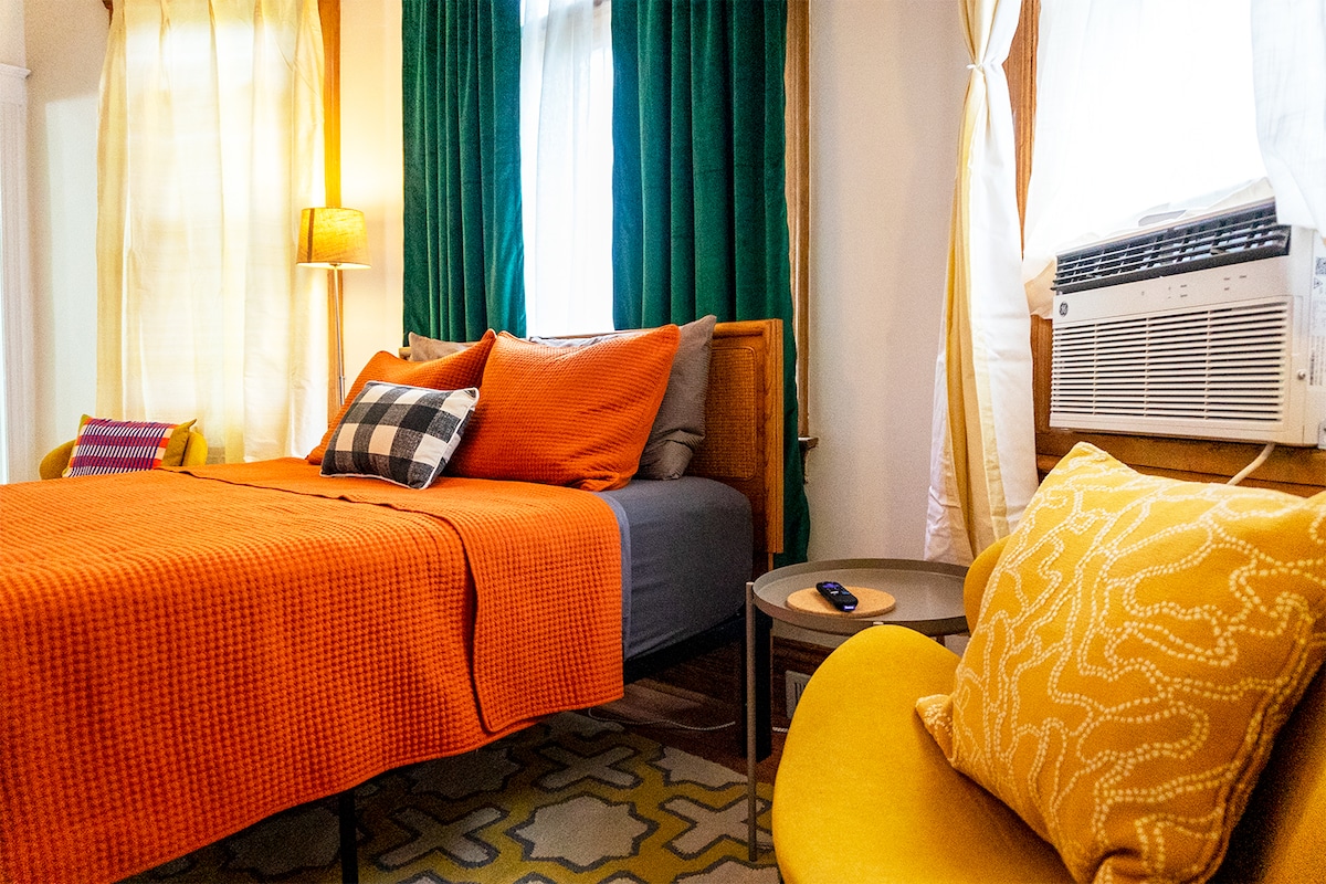 A “magical getaway”, eye candy”, “a respite”, "the best Airbnb ever". Best porch in Ferndale. Ideal location in gorgeous historic Northwest Ferndale with unique homes and tree-lined sidewalks. Great art and rock n roll/eclectic decor. A few blocks to shop, pick up food, dine at one of our many foodie destinations (1/2 mile/8 min walk). Pilot episode HGTV’s “What You Get For The Money”, SEEN Magazine’s “5 Cool Detroit Airbnb’s”, interior design cover story “Detroit News Homestyle” magazine 3x!
