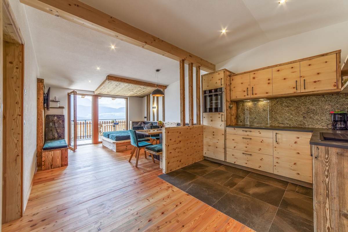 The apartment Thalerhof Naturae Lignum is situated in Unterinn Ritten, which is 15 minutes by car (11 km) away from Bolzano/Bozen in South Tirol, Italy. It boasts a spectacular view of the surrounding Alps, along with newly renovated interior design, thus making it a wonderful getaway. The 45 m² apartment consists of a living room, a well-equipped kitchen with a dishwasher, 2 bedrooms as well as one bathroom and can therefore accommodate 4 people.