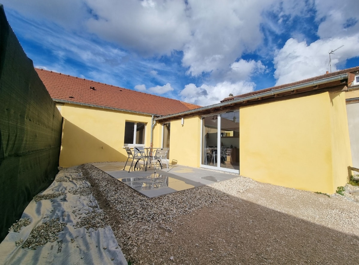 Profitez d'un logement élégant et central, paisible, neuf, tout confort au rez-de-chaussée de ma maison. Situe à 5 min à pieds des quais d'Auxerre, 10 min à pieds du centre ville, 15 min de la gare , 15 min de la sortie A6. Commerces à 10 min à pieds. C'est aussi un point de départ idéal pour decouvrir la campagne icaunaise et le vignoble Chablisien(20 min), Saint Fargeau(40 min) Lit parapluie, rehausseur sur demande , petite terrasse , place de parking privée