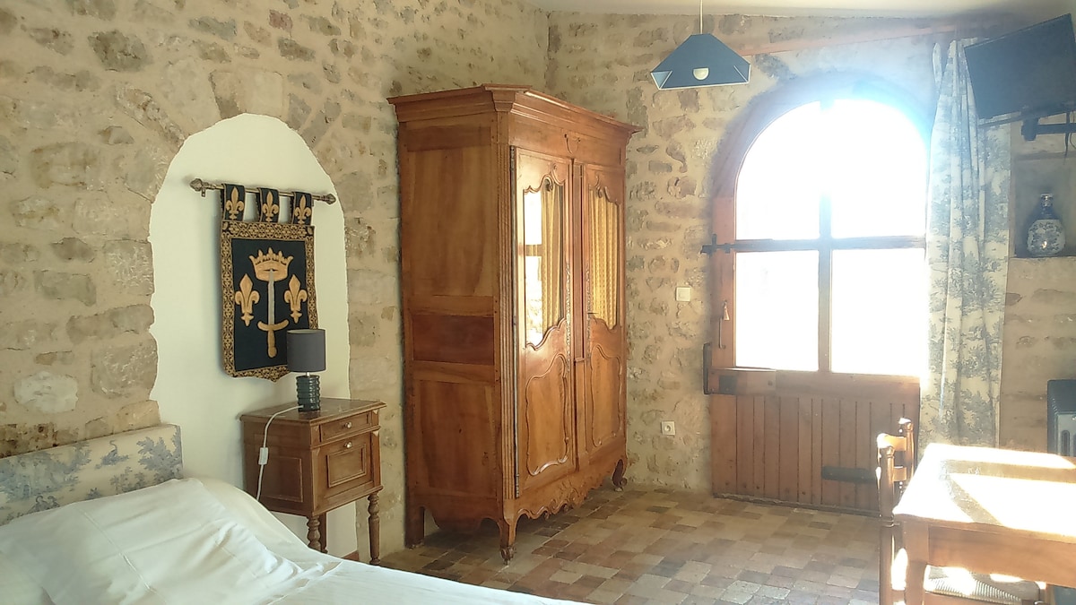 Vous séjournerez au sein d'un ancien château viticole, vous dormirez dans le "Studio" équipé dans un lit 2 places de 180 cm, Le Studio est équipé d'un micro ondes, frigo, cafetière, bouilloire, plaque de cuisson, barbecue. Vous pourrez profitez de la piscine chauffée en saison et du court de tennis. Un parc arboré est également à votre disposition pour vous détendre.
