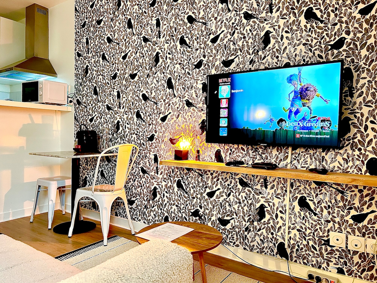 🌿 Charming Nest in the Heart of Niort 🌿 Cozy 20 m² studio with a private garden, loungers and outdoor furniture for relaxing moments. It features a living area with desk and TV (Netflix), a fully equipped kitchen, a separate sleeping area with a 140x190 bed, a modern bathroom with shower, and separate toilets. 🎁 Coffee, tea, bed linen, towels, and high-speed WiFi included. Perfect for a romantic getaway, just steps from shops, restaurants, and downtown activities!