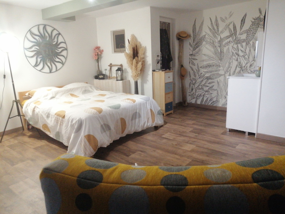 Les gîtes des 3 vents à 6km du Puy du Fou - Logement rénové en janvier 2024 Maison de 40 m2 en bord de sèvre : 1 chambre avec sauna et baignoire balnéo, 1 pièce de vie cuisine équipée/salon avec télé et wifi, 1 wc indépendant, 1 salle de bain. Terrasse de 30m2. Nos suppléments (en option) : - linge de lit : 8€ par lit - linge de toilette : 4€ le pack de serviette