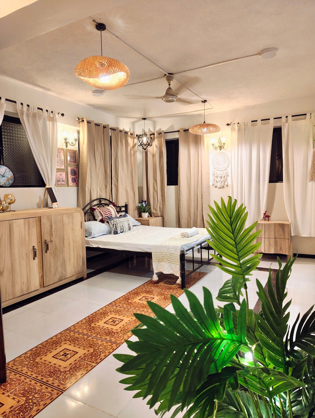 Experience slow living at The Odd Table, a cozy studio tucked in the quiet lanes of Mandrem, just 5 mins from the beach. Your private studio comes with a fully equipped kitchen, workspace, and access to a rooftop common area—home to the Odd Table, where travelers meet to work, read, or unwind on the hammock. Join our weekly events, share stories, and connect with like-minded souls. Close to Prana, Dunes, and only 10 mins to Morjim & 20 mins to Siolim, this space lets you create and belong.