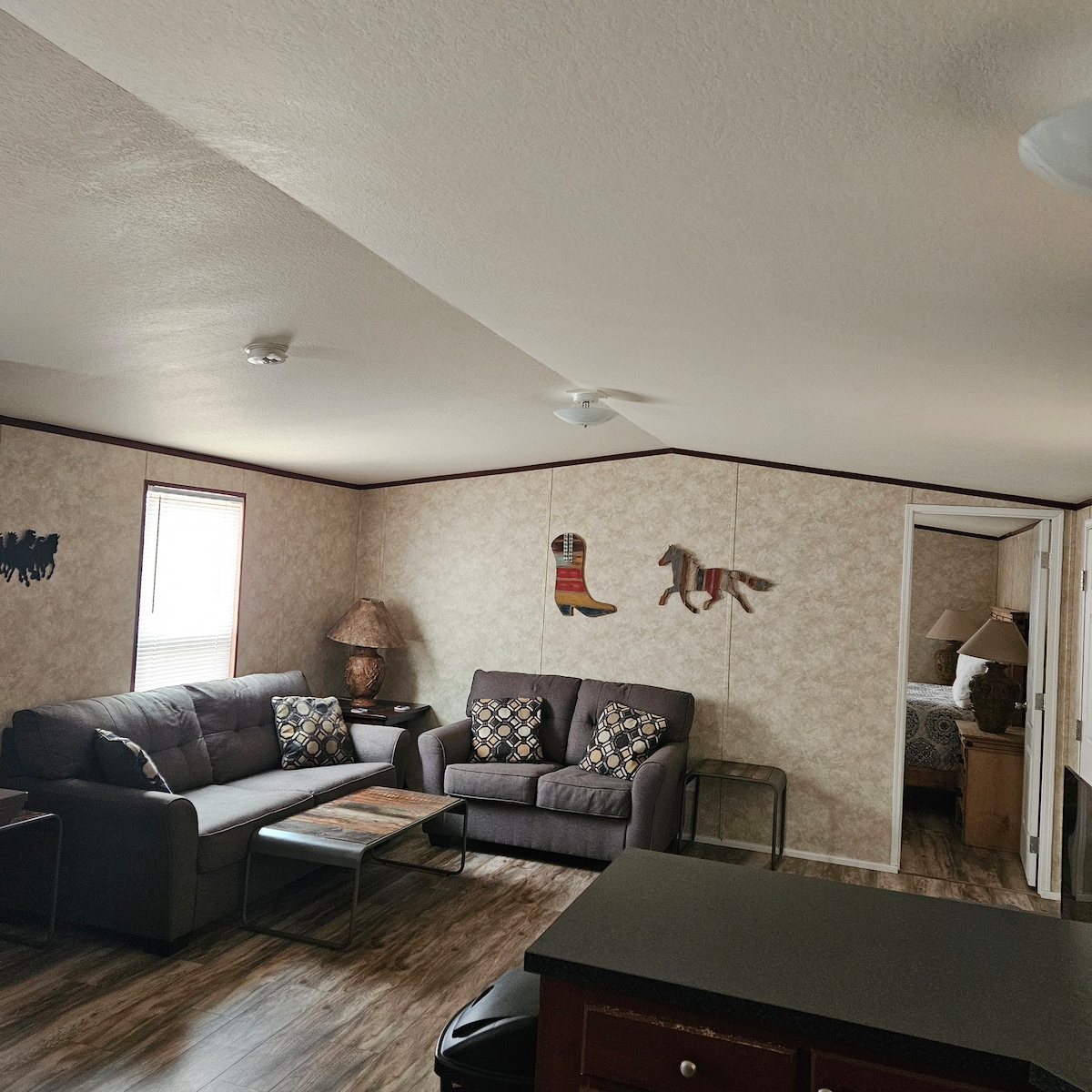 Our Top of the World Vacation Rentals can sleep up to 6 adults. They come with a queen in the primary bedroom, twin bunks in the second bedroom, a sleeper sofa in the living room, & two queen beds in the overhead loft area. The kitchen provides full appliances. RVs and Camping Trailers are not permitted to park at vacation rental parking at any time. Utility trailers hauling toys will require booking a second site due to extremely limited, to no overflow parking. Please call for details