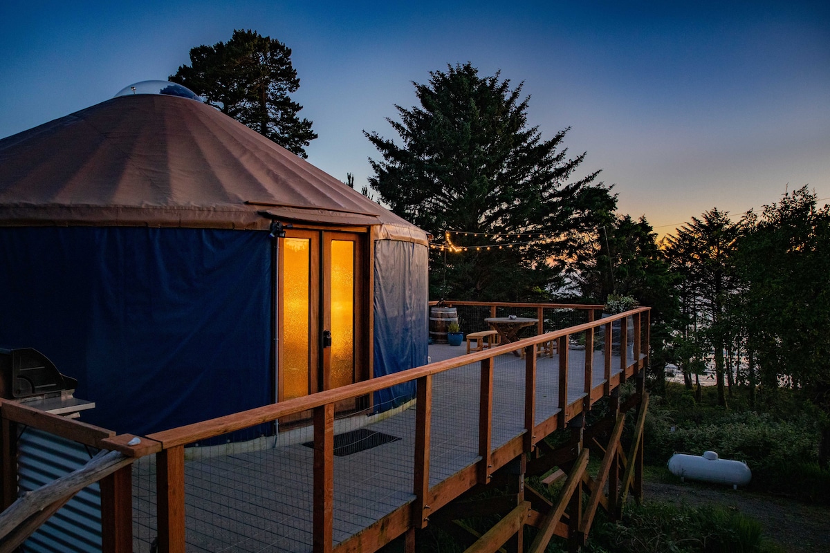 Pet Friendly and Ocean Views! The Otter Rock Surf Yurt overlooks the Devil's Punchbowl beach and an easy walk to Beverly beach, Mo's West Chowder & Seafood, Flying Dutchman Winery, Pura Vida Surf Shop, and Cliffside Coffee & Sweets. The Yurt is equipped with a full kitchen, bathroom and shower, gas heat stove, WiFi/TV, BBQ, and outdoor shower. BYOB - bring your own bedding, with two futons and oversize Paco Pads (firm), we recommend bringing extra blankets for padding and chilly coastal nights.