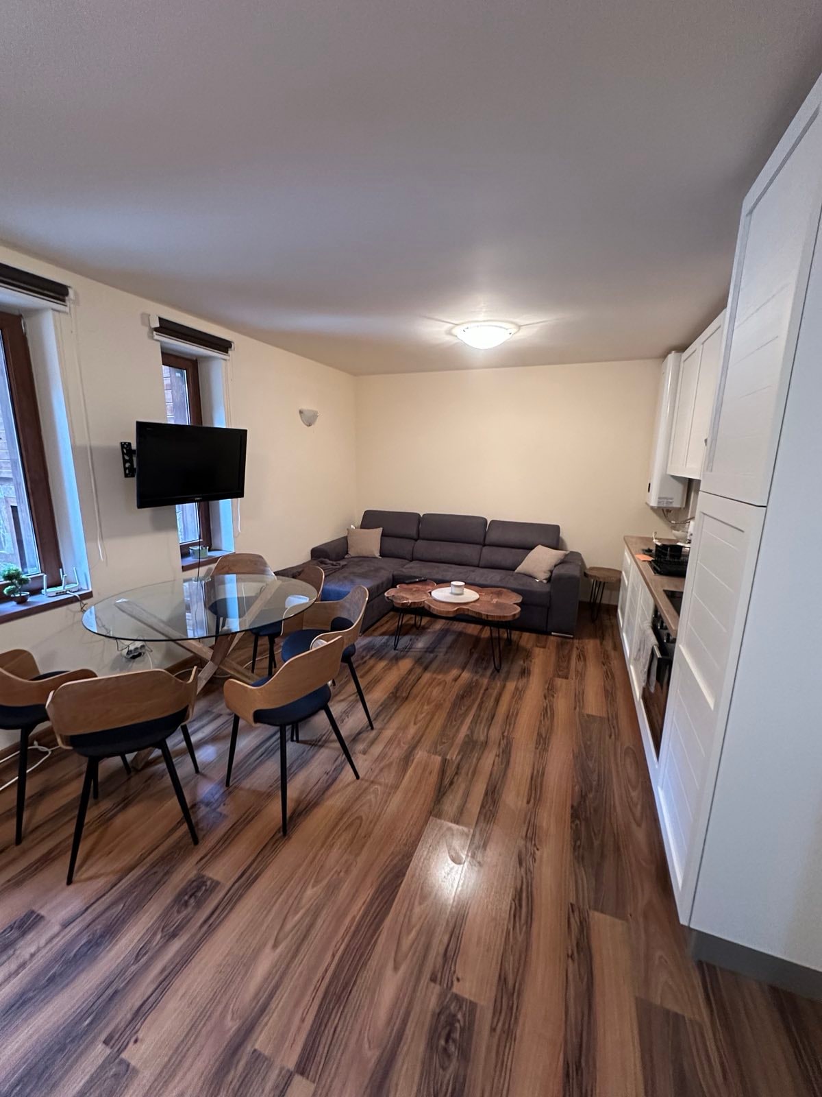 Насладете се на малък уютен апартамент на спокойно и комуникативно местенце. На ваше разположение е спалня с възможност да бъде осигурена и детска кошара, просторен хол с разгъваем диван, напълно оборудвана кухня и телевизори във всяка стая. На разположение на гостите има безплатен частен паркинг.