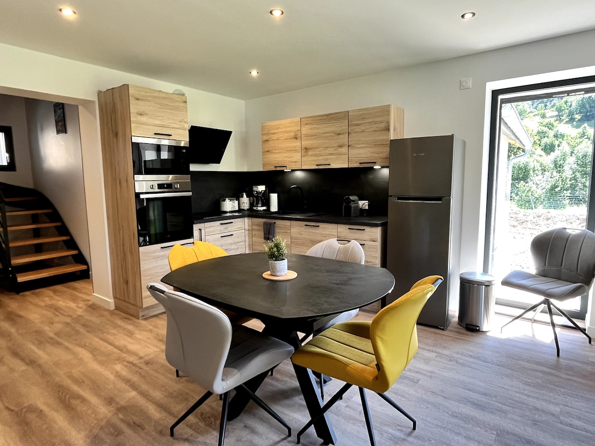 Venez vous ressourcer au pied de la station de ski familiale de Laye et tout près du golf Gap Bayard . Nous vous proposons un gîte indépendant de près de 90m2 grand confort avec SPA et une vue imprenable sur la vallée du Champsaur. Le gîte comprend 2 chambres de 15m², un grand séjour cuisine tout équipé et une veranda. Vous profiterez également d'un extérieur agréable et plein sud avec une terrasse ombragée, un espace vert, des jeux pour enfants et des places de parking.