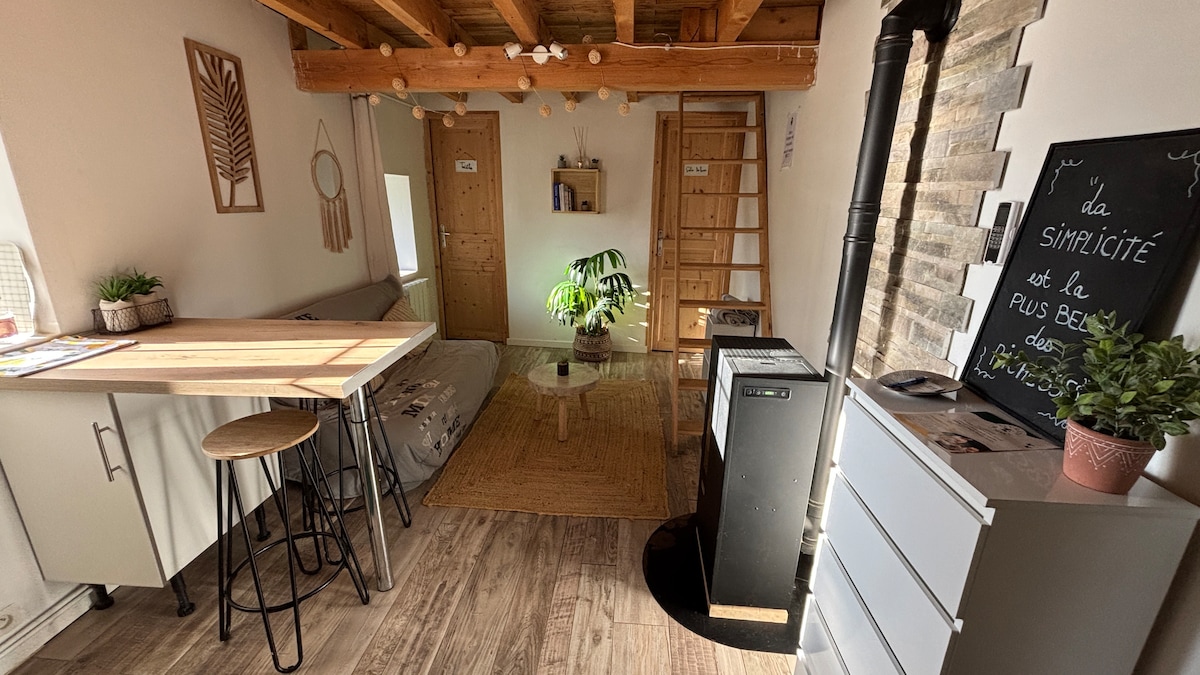 Venez découvrir ce logement complètement neuf, situé au rez de chaussée de notre chalet. D'une superficie d'environ 38 m2, l'appartement se compose d'une cuisine équipée, d'un salon avec canapé, d'une chambre et d'une magnifique salle de bain. Idéal en couple ou entre ami, vous pourrez profiter de notre charmant département depuis notre chalet. L'entrée du logement est indépendante, donnant sur directement sur l'extérieur. L'accès à la piscine n'est possible que du 10/07 au 5/08
