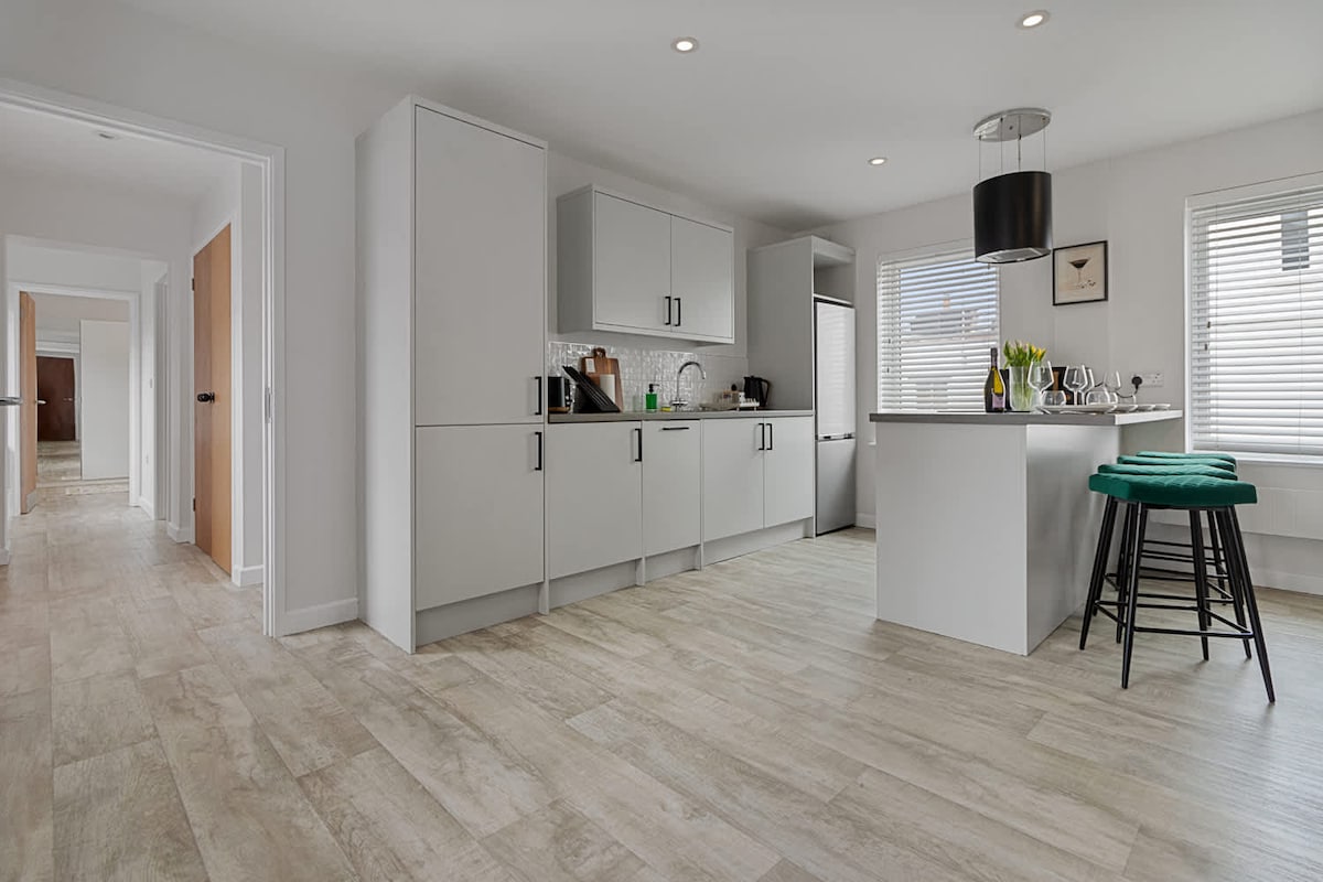 Our spacious cottage is perfect for families, groups & business stays, featuring a comfortable lounge, home cinema & 3rd lounge/twin room. Enjoy 6 spacious bedrooms, 3 bathrooms and 2 toilets. Fully wheelchair accessible with wide doorways, an accessible toilet, and a wheel-in wetroom. The large kitchen offers dining space for 16 with a dishwasher, freezer & washing machine. Relax on the large decked patio with tables and benches for 16 and a BBQ. We're dog-friendly with fantastic walks nearby.