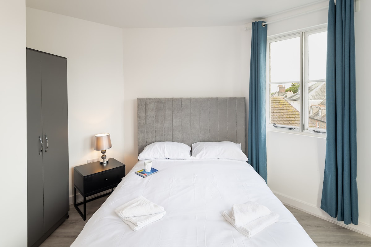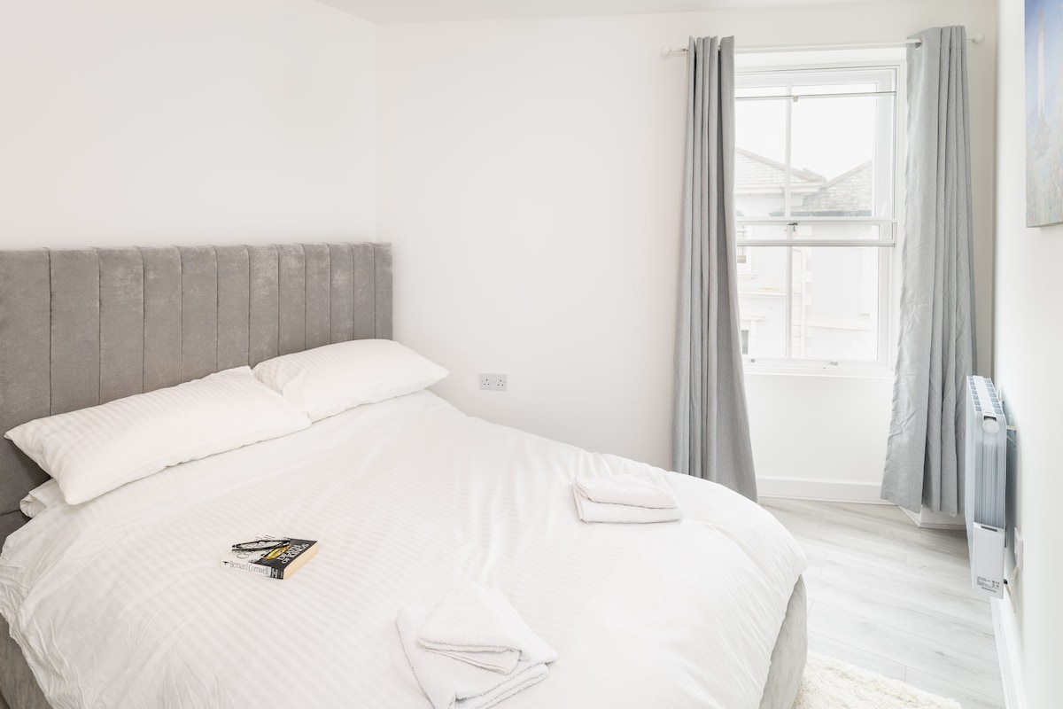 • A pleasant stroll from the Torquay Seafront • Newly renovated • Free Wi-Fi and flat-screen TV • Accommodates up to 4 guests with a super king bed, a single bed, and a sofa bed • Includes a fully-equipped kitchenette • Includes a private bathroom with a separate bath and shower • 7 free on-site parking spaces available + additional free street parking options available nearby (limited) • A communal laundry room is available for guest use • Pet-friendly. Charges apply