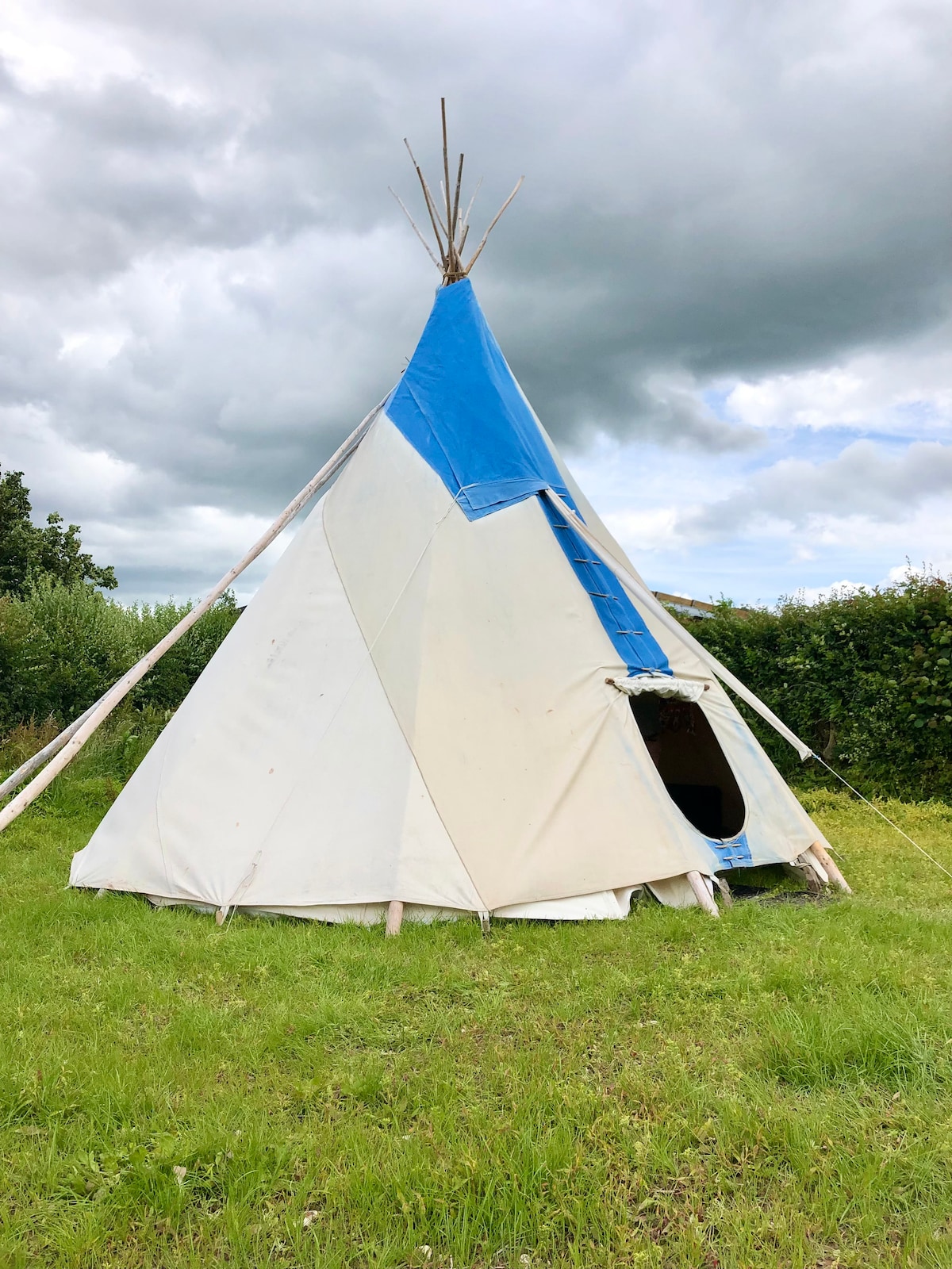 located in an area of outstanding natural beauty close to the Jurassic Coast. This authentic canvas tipi is situated in its own field with views of the surrounding hills. We provide the tipi, a coconut matting floor and 4 foam camping mattresses, you will have to bring everything else, including drinking water. there is a bathroom with a shower which is shared with 2 other airbnb properties. if you would like to bring pets, please notify me first You can park within 50 meters by the field gate