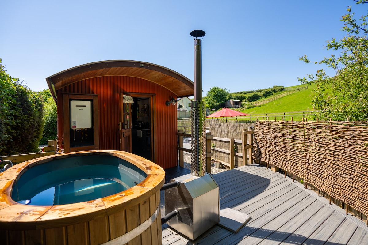 Close to Bantham Beach, Bigbury-on-Sea, Salcombe and Kingsbridge, this fully-equipped high quality Shepherd Hut is set in a tranquil location with stunning views across to Dartmoor. Totally refitted last year, as well as the private hot tub adjacent to The Hut, there is a large outdoor wooden gazebo, offering perfect places to enjoy sunsets or starry skies. The Hut is ideally situated in South Devon and offers a peaceful rural retreat with close proximity to many Devon beaches and towns.