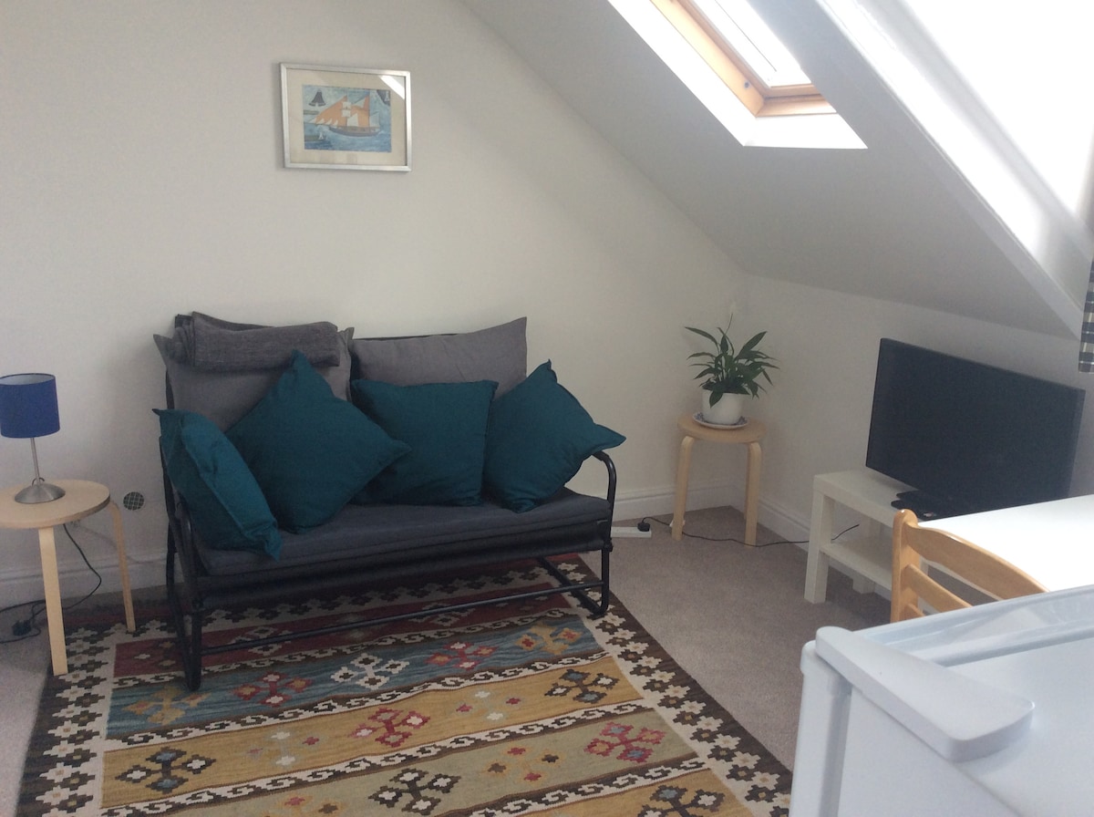 One of the best sea views on the Cornish holiday letting market. Free on street parking 150 meters from property. Parking at property in summer school holidays. Stunning studio loft apartment just 200 metres from the sea and beach. Wake up to the view of the sea from the end of the bed. Self check in, 100% self contained, self catering with kitchen. Private separate access to apartment from Top Road. High spec finish within. Ultra-fast Wifi, SKYTV/Sports/Cinema/Netflix/Prime/Disney+/Discovery+