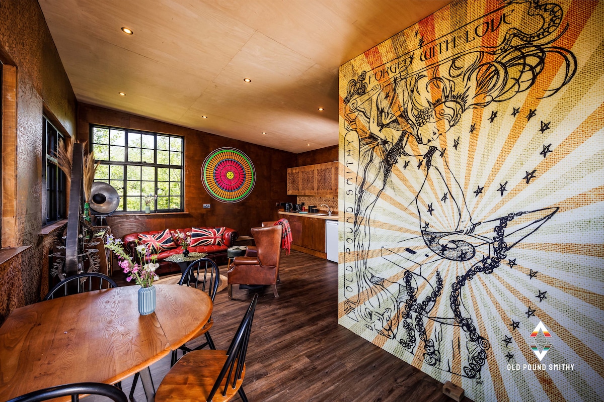 A romantic get away in this off grid stargazing belle tent on a small adults-only glamping site with three units. Flicker's tent is perfect for a get away or celebrating a special event with a wood burning fire to keep warm and a stargazing roof you will feel really connected with nature. This tent is served by its own bathroom with shower and kitchenette. Outside there is your own wood burning hot tub and fire pit. The view is truly spectacular across the tone Valley.
